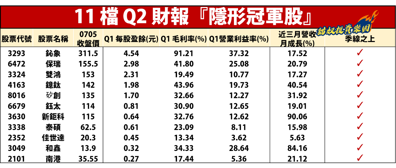 ◎ 12 檔 Q2 財報『隱形冠軍股』