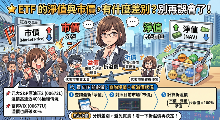 你手上的 ETF 卻沒跟著動,甚至還跌?那你很可能還沒搞懂「ETF 淨值」與「市價」的差別。