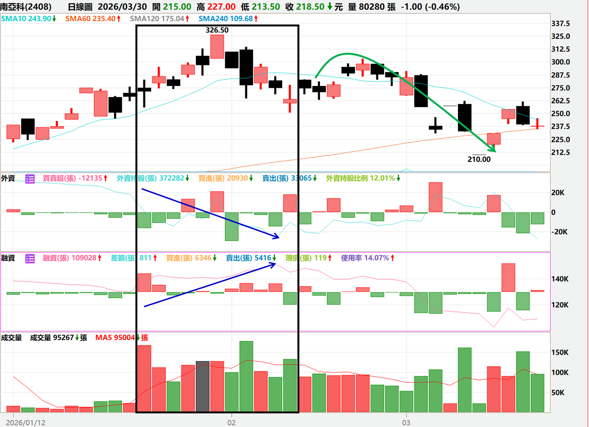 3. 末升段行情訊號:法人連續賣 + 融資暴增