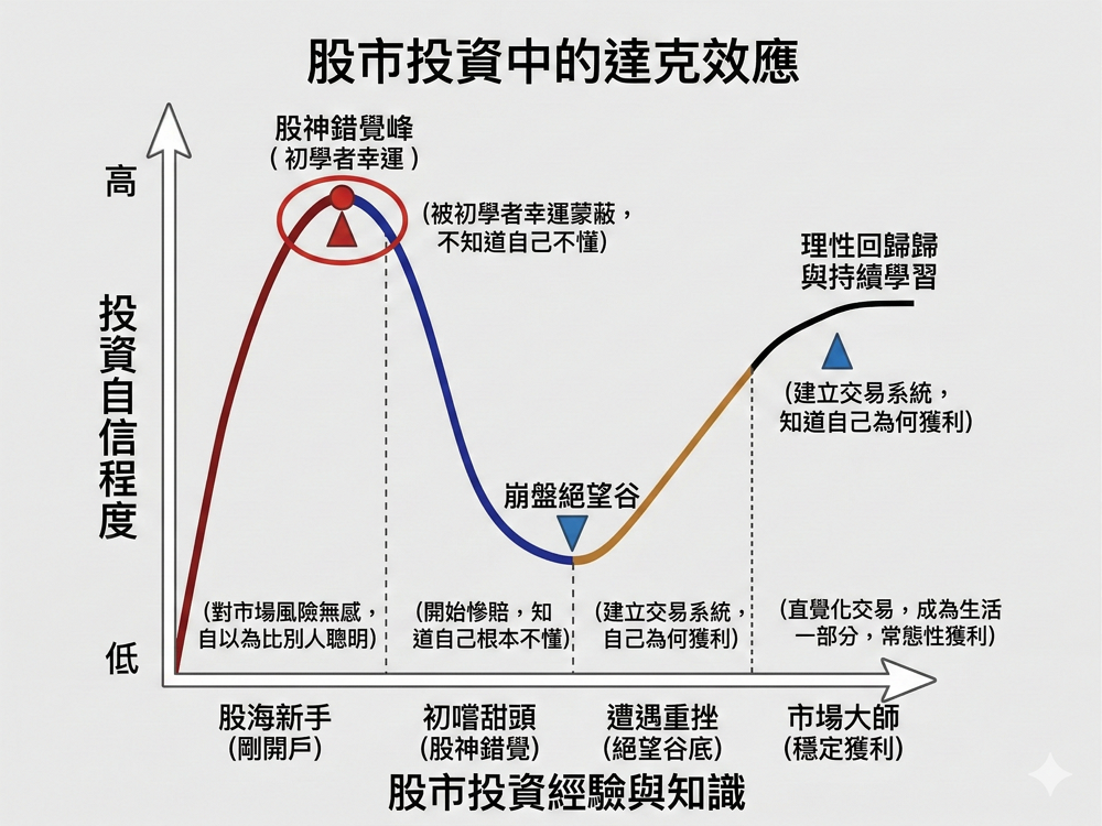 🚀 股市裡的「達克效應」:為什麼新手總是死在最自信的時候?