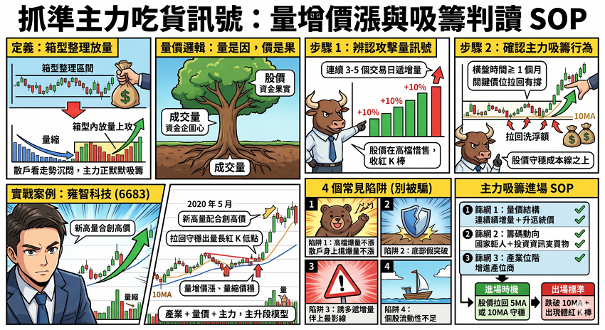 雍智科技(6683)實戰案例:量增價漲攻擊量 + 主力吸籌完整還原