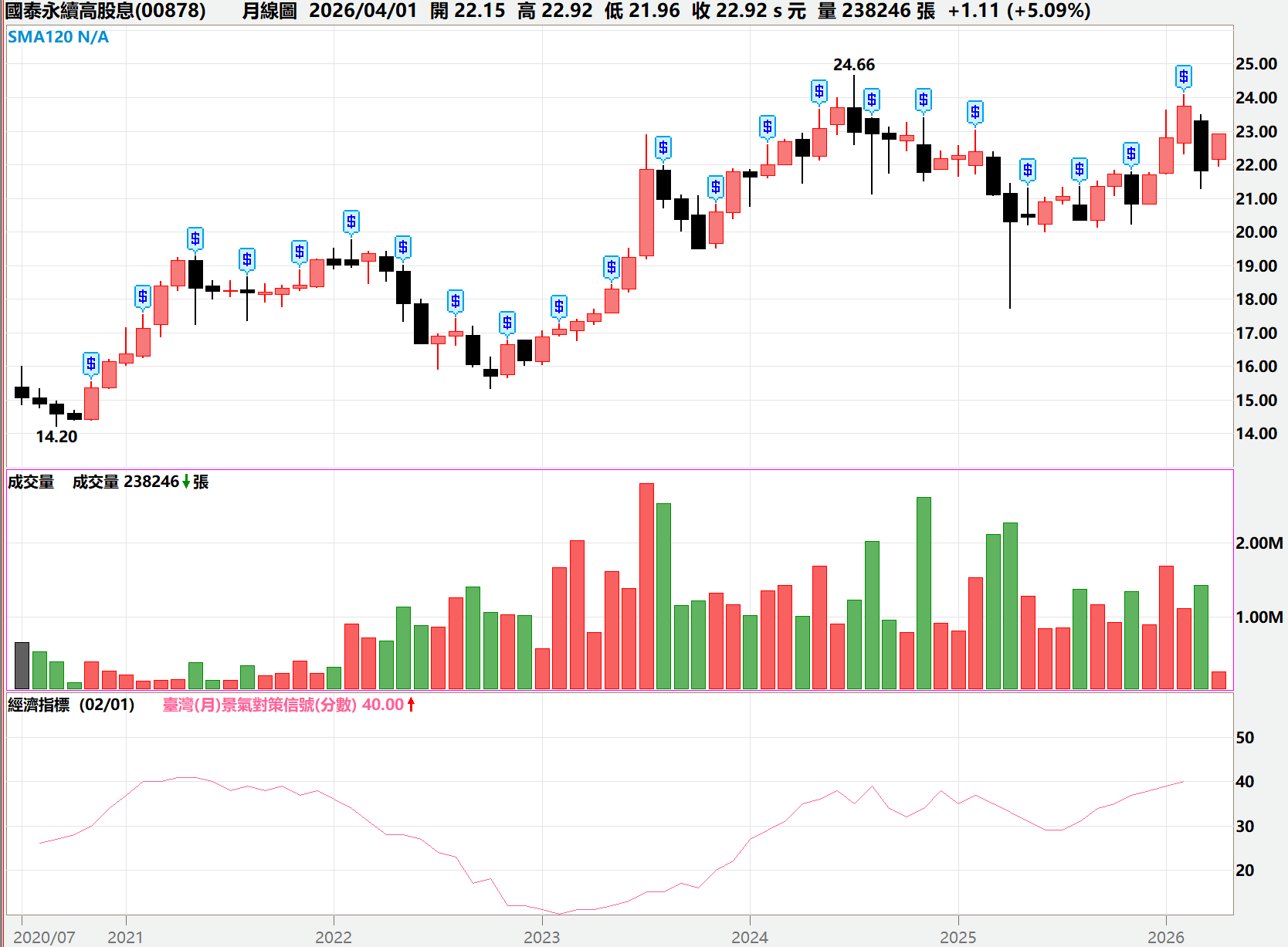 • 年化殖利率試算: 若 2026 年 5 月維持 0.42 元至 0.47 元水準,以 2026 年 4 月初股價約 22 元計算,單次配息率約 1.9%~2.1%,年化殖利率仍穩守 8% 以上