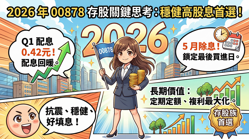 如果你是追求穩定現金流、不希望資產波動太大的投資人,00878 是 2026 年穩健型配置的理想標的。在進場前,建議同步觀察 0056 元大高股息 或 00919 群益台灣精選高息 的配息表現,進行多元配置分散風險。