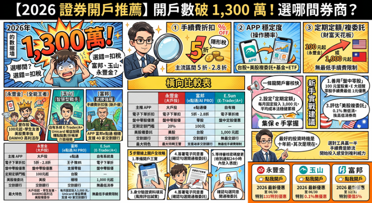 💡 本文資訊於 2026/04/23 由作者 E 大親自更新,確保您獲取的是 2026 年最新券商手續費與開戶優惠。